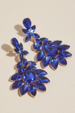 Cobalt marquise- and pear-cut crystal chandelier earrings top your quincea era look with bold sophistication.