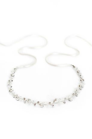 This delicate, hand-wired halo gives the look of dainty flower crown with sparkling marquise and round crystals. Two included sets of ribbon ties let it be used as a hair accessory or a sash.