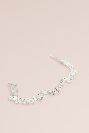 A soft wave of sparkling marquise crystals creates a gorgeous topper for your wedding hairstyle. Attached to two combs, the flexible, hand-wired halo can be worn on the top of the head, down the side of a loose and wavy style, or at the back of a classic updo.