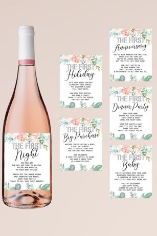 Decorated with pretty florals, this set of six wine labels covers all of the happy couple's major first milestones: First Night, First Big Purchase, First Dinner Party, First Holiday, First Anniversary, and First Baby. The glossy labels water-resistant, so bottles can be refrigerated or served on ice.