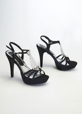 - Crystal platform sandal features 4" heel and a 1" platform.