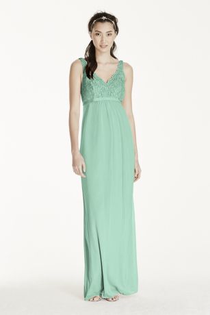 Style, sophistication and comfort make this long corded lace mesh maternity dress the perfect choice!