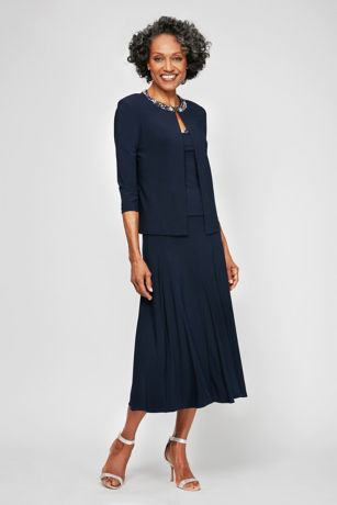Matte Jersey Jacket Dress with Beaded Sequin Trim