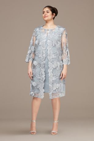 Look put-together without any fuss in this matte jersey plus-size dress. The attached lace jacket gets a dash of style from three-quarter illusion sleeves.