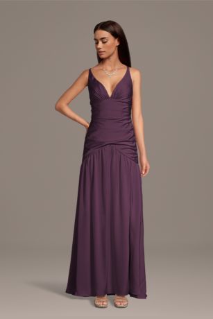 Crafted from smooth matte satin, this dress gets its glamour from tank straps and a beautifully draped drop-waist bodice. The skirt swishes gracefully, making it perfect for bridesmaids or a big night out.