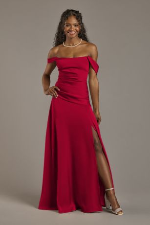 A: Designed with comfort in mind, this lined dress features a soft matte satin fabric and an off-shoulder cut that allows easy movement. The dress comes in many colors and multiple sizes to ensure both style and comfort throughout your event.