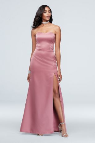 Matte Satin Strapless Sheath Gown with Slit