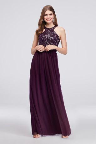 Mesh Halter A-Line Gown with Sequin Bodice