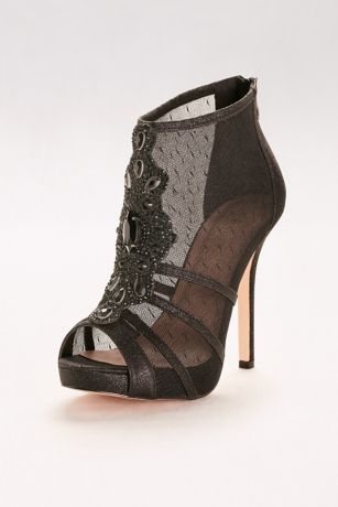 Mesh Peep-Toe Booties with Crystal Embellishment