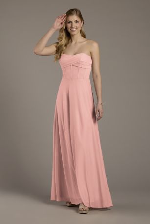 This spaghetti strap mesh A-line dress features a delicately twisted bodice with corset details for a flattering silhouette. The flowing skirt adds effortless elegance, perfect for bridesmaids or any special occasion.