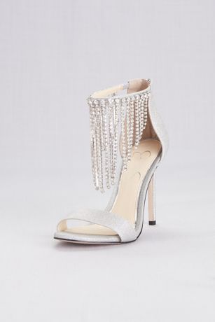 Metallic Crystal Fringe Strap Evening Sandals