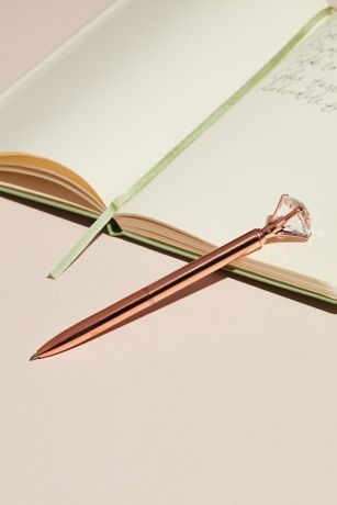 The metallic diamond pen from David's Bridal adds a touch of glamour to your everyday writing tasks. With its sleek design and sparkling diamond accent, this pen is sure to make a statement. Whether you're jotting down a quick note or writing a heartfelt thank-you card, this pen will make the experience feel a little more special. Treat yourself or gift it to a friend who appreciates a little extra sparkle in their life. Make writing a luxurious experience with the metallic diamond pen from David's Bridal.