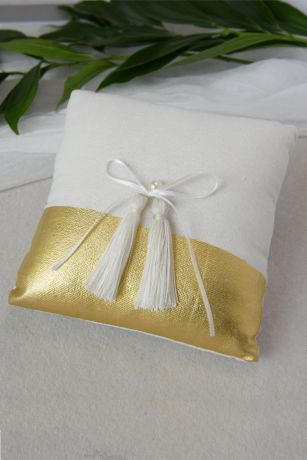 Topped with a pretty bow, this gold-dipped pillow is a sophisticated way to carry the rings down the aisle.
