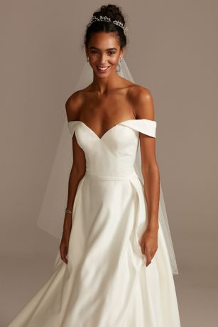 A two-tier drop veil is perfect for a traditional reveal at the start of the ceremony. This simply elegant version features a fine metallic edge.
