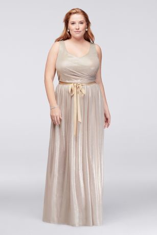 Metallic Foil Plus Size Gown with Ruched Waist