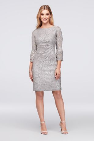 Metallic Lace Cocktail Dress with 3/4 Bell Sleeves
