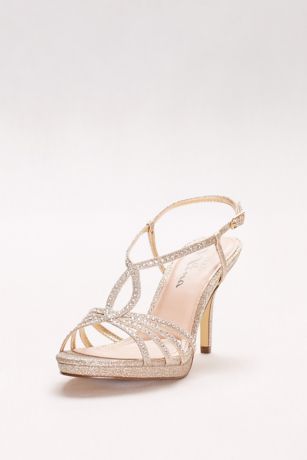 Slim metallic straps create a flattering, ladylike pair of heels.