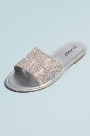 Metallic Slide Sandals with Allover Crystal Straps