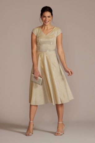 Metallic Tea-Length A-Line Dress