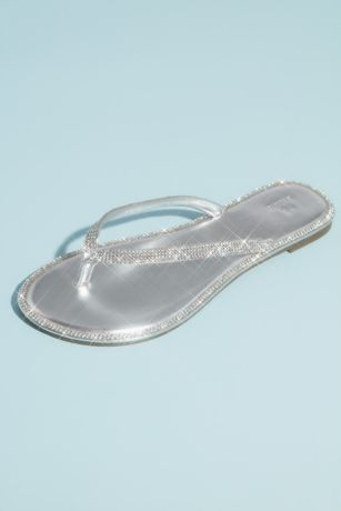 Comfortable and eye-catching, these metallic thong sandals are trimmed with rows of sparkling pave crystals.