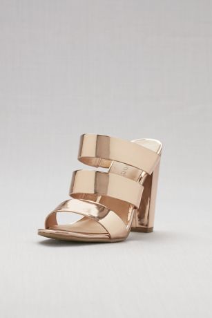 Right now, nothing is more fashion-forward than a mule, like this strappy, high-shine metallic version with a chunky heel.