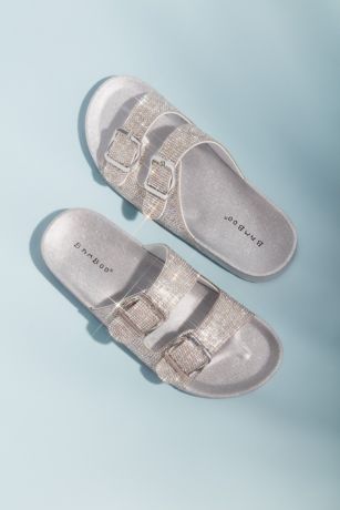 Embellished with micro crystals, these flat sandals are both casual and chic. Change into them after a long night of dancing, or wear them on your beach honeymoon.