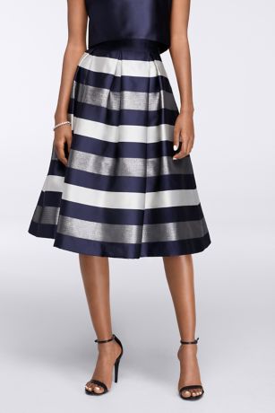 Elegant striped satin jacquard with shots of metallic shimmer makes this striking skirt a standout at any party. Designed with an inset waistband for flattering definition and box pleats for added fullness.
