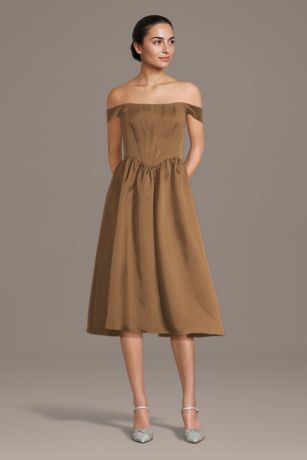 Mikado Corset Bodice Off-the-Shoulder Midi Dress