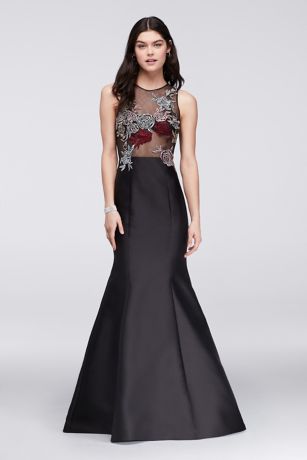 Mikado Trumpet Gown with Embroidered Illusion Top