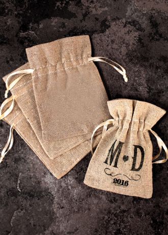 These mini linen drawstring pouches are simply lovely. Their rustic charm will be the perfect complement for any country or vintage theme wedding. A quick and simple way to wrap up a small treat to create a wedding favor your guests will enjoy receiving. Bags are only available unpersonalized. This do-it-yourself personalized look can be achieved with rubber stamps and inks of your choice, not included.