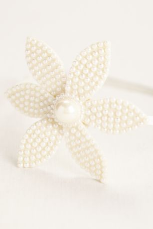 - Mini pearl filled petal fllower headband features large pearl accent.
