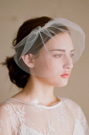 This hand-stitched mini tulle veil adds a bridal touch to any wedding look, whether you're saying "I do" in a jumpsuit or a gown.