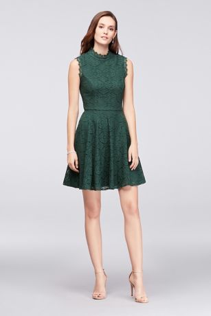 Mock-Neck Lace Fit-and-Flare Dress