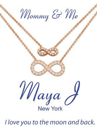 This Mommy and me infinity necklace is the perfect way to show your child that you love them to the moon and back!
