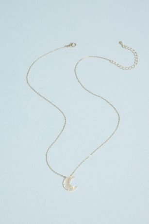 We're moonstruck by this pendant necklace featuring a spellbinding moon charm trimmed in crystals strung along a delicate chain.