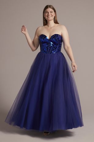 Who needs a knight in shining armor when you can be your own? This ball gown combines an edgy mosaic corset bodice with a delicate sparkle tulle skirt, to create pretty, punk-rock perfection.