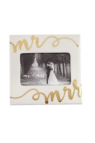 This Mr. & Mrs Frame is a classic, elegant and versatile piece that can be used as wedding decor or as a gift to the new couple. Made of ceramic, gold foil script "Mr" and "Mrs" adorns the white background of this frame. Perfect for showcasing engagement or candid photos during the ceremony, and an ideal place to capture wedding day photos after the big day.