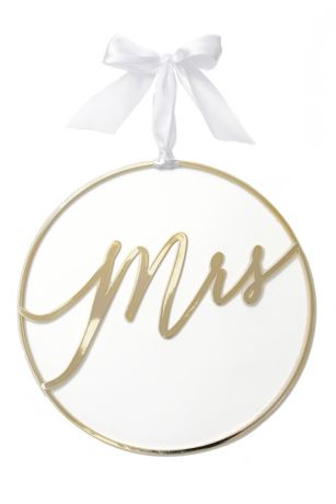 Accented with a taffeta ribbon, this gold-tone "Mrs." chair sign is the perfect way to reserve a seat for the bride.