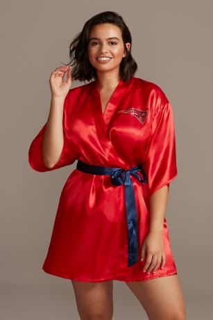 Any New England Patriots fan will absolutely love this luxe NFL satin robe, proudly featuring the Patriots' team logo in shimmering multi-colored rhinestones.