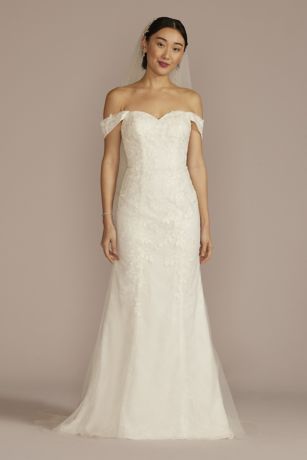 Off-Shoulder Lace Applique Sheath Wedding Dress