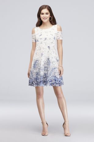 Printed Daisy Lace Cold-Shoulder Short Shift
