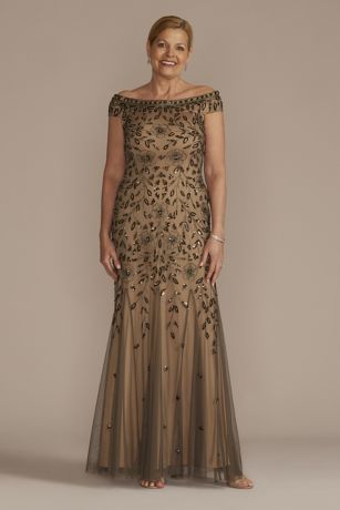 Off-the-Shoulder Beaded Dress with Godet Hem