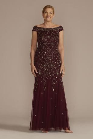 Off-the-Shoulder Beaded Dress with Godet Hem