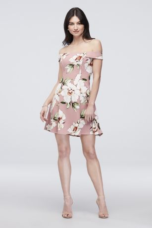 Flattering on every figure, this off-the-shoulder short dress showcases a wear-everywhere floral print.
