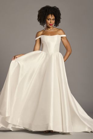 Off-the-Shoulder Mikado Basque Waist Ball Gown