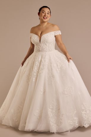 Off-the-Shoulder Plunge Ball Gown Wedding Dress