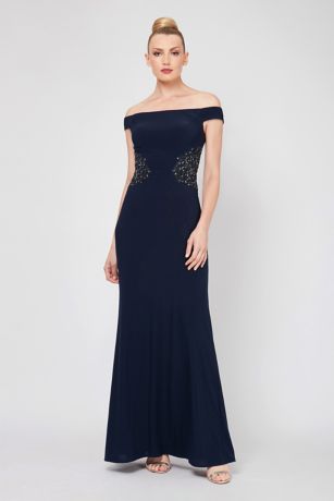 Off-the-Shoulder Sheath Dress with Sequin Waist