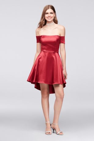Off-the-Shoulder Stretch Satin High-Low Dress