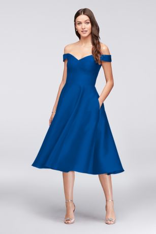 Off-the-Shoulder Tea-Length Bridesmaid Dress