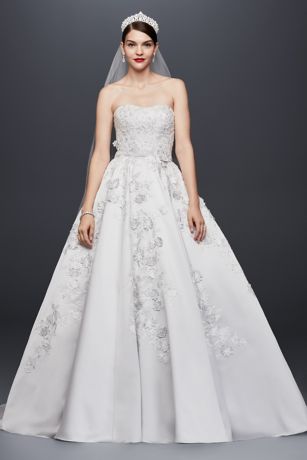 Oleg Cassini 3-D Floral Satin Wedding Dress
